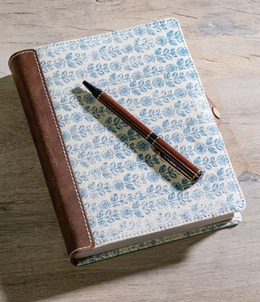 8" Blue Floral Leather Journal