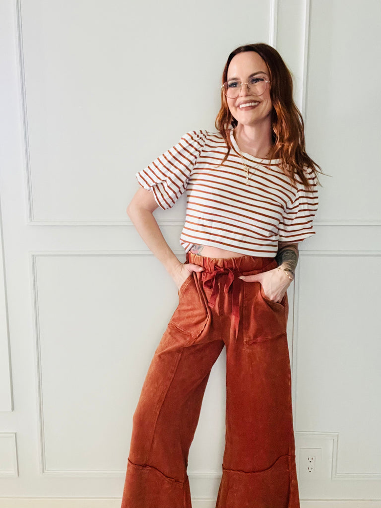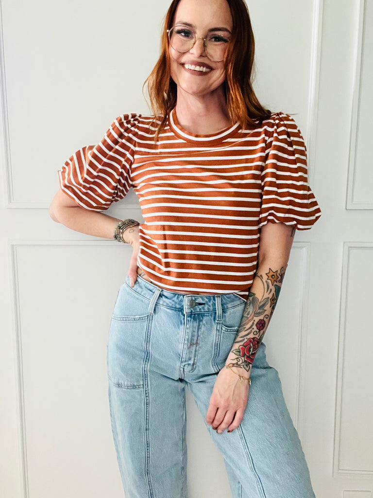 Adobe Puff Sleeve Stripe Top