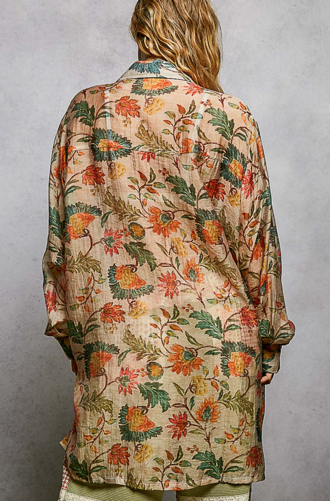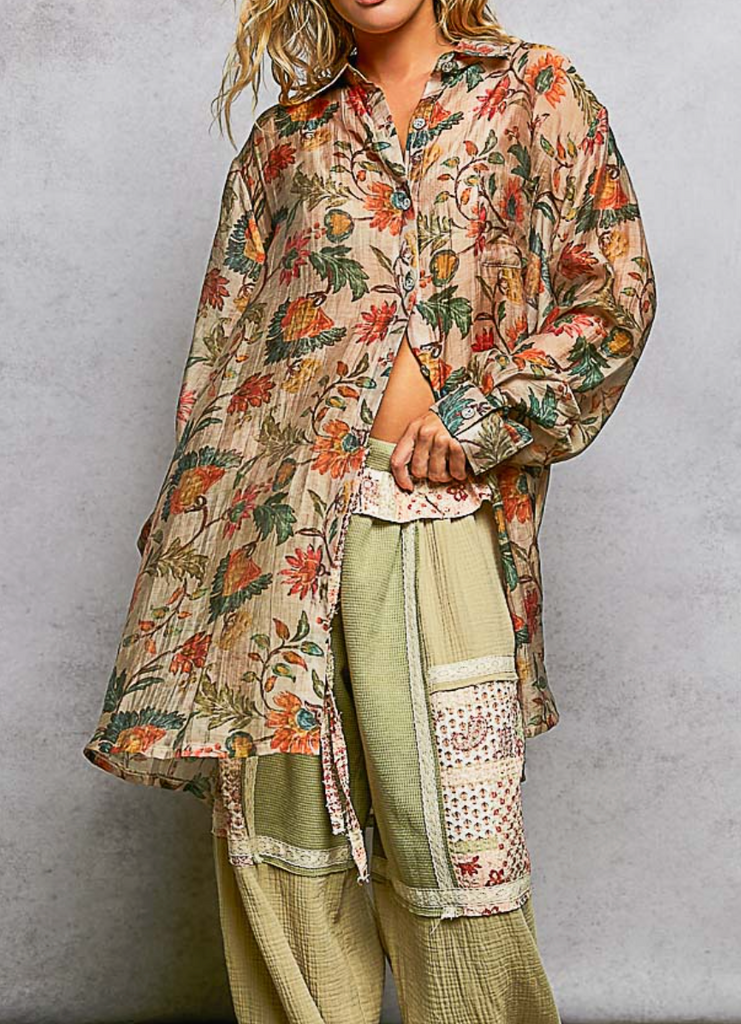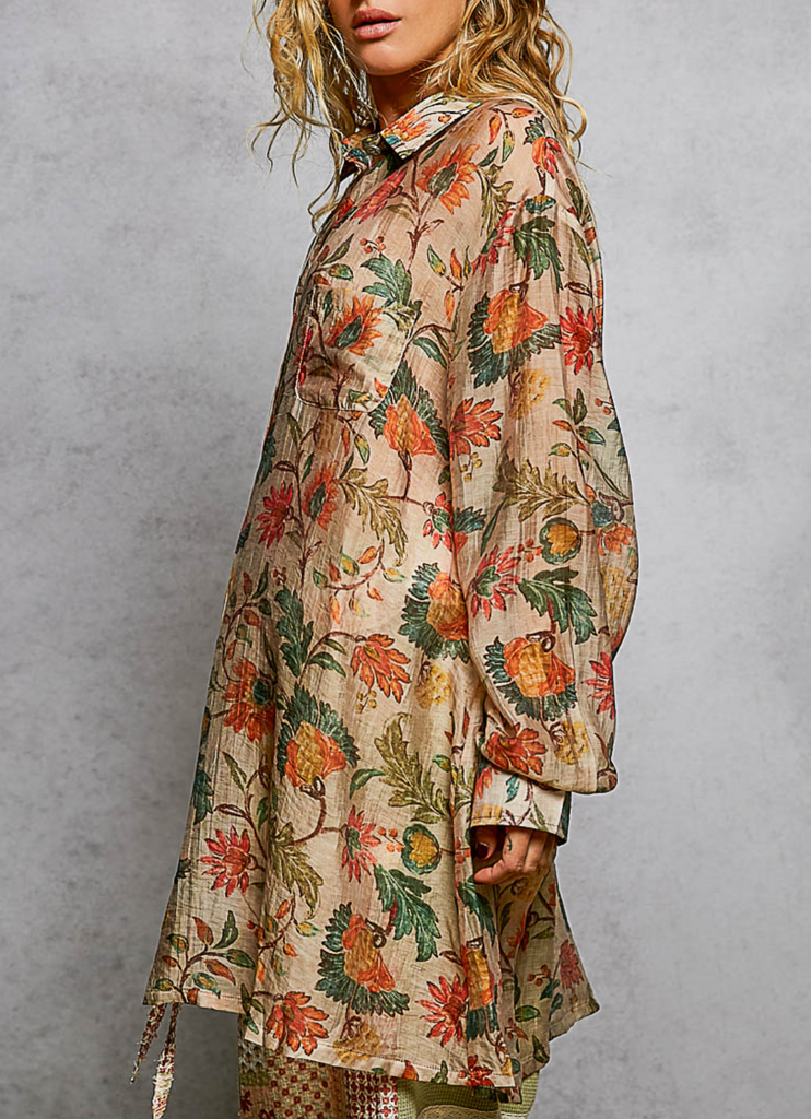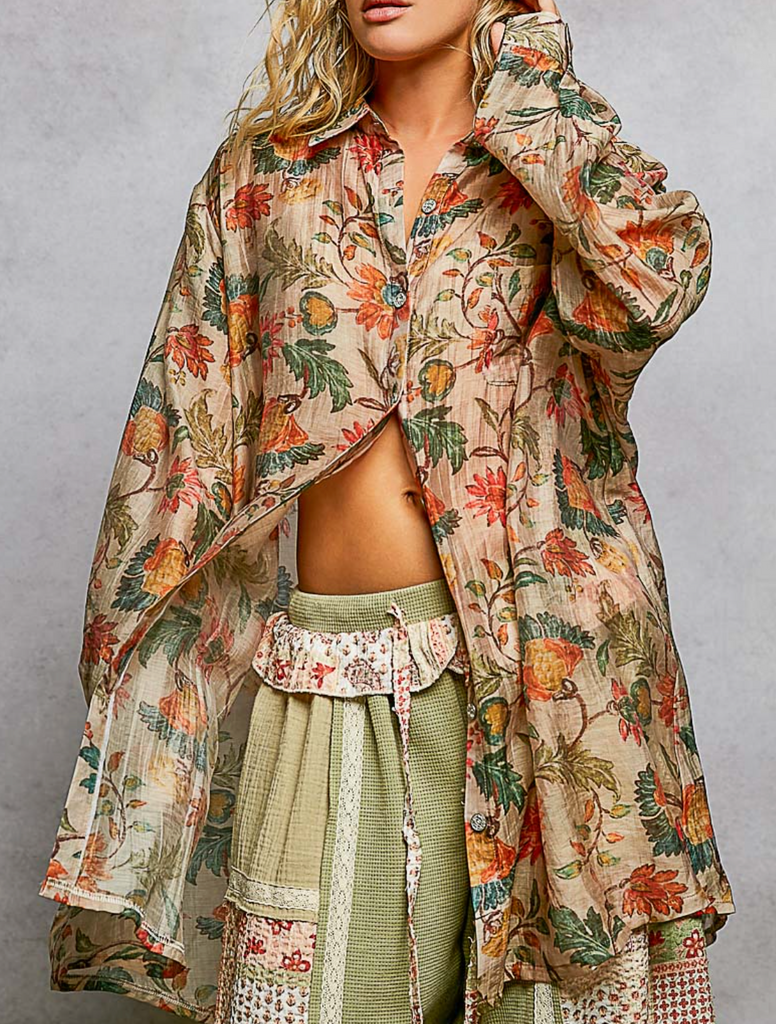Boho Floral Oversized Button Up